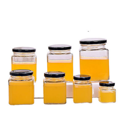 Kundenspezifische leere Nahrungsmittelspeicher-Quadrat-Honey Jar Glass Jar Glass-Speicher-Flaschen für Honig