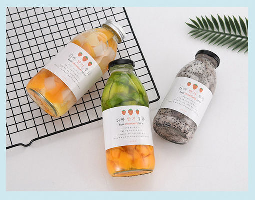 Glasmaterial der hohen Qualität, verdickter Flaschenmund, unterer Faden der Flasche rutschfest, gutes Versiegeln, umgekehrte mehrfache Kapazitätsauswahl des Wassers leakage.300ml 350ml 500ml, verwendet für alle Arten Fruchtsaft-Getränkverpacken